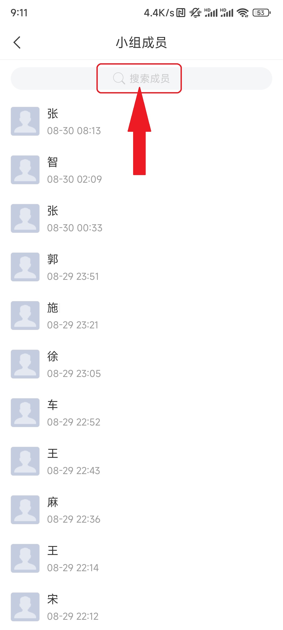 ③点击“成员”,这里可以看到小组内所有人数。