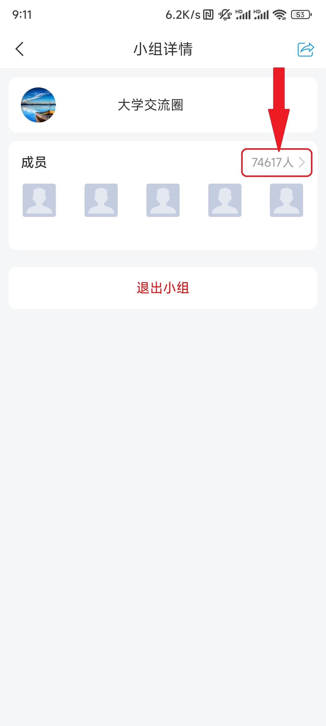 然后你会看到XX大学交流圈的小组,里面有几千几万个人,说明每个人都在里面。